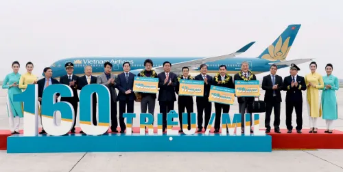 Ba hành khách thứ 160.000.000, 159.999.999 và 160.000.001 đi trên chuyến bay VN417 từ Incheon (Hàn Quốc) về Hà Nội, hạ cánh xuống sân bay Nội Bài lúc 14 giờ 10 phút ngày 27/12/2015.