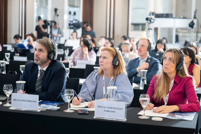 Các đại biểu tham dự tại buổi công bố báo cáo Cập nhật Kinh tế Việt Nam của WB. (Ảnh: Vietnam+)