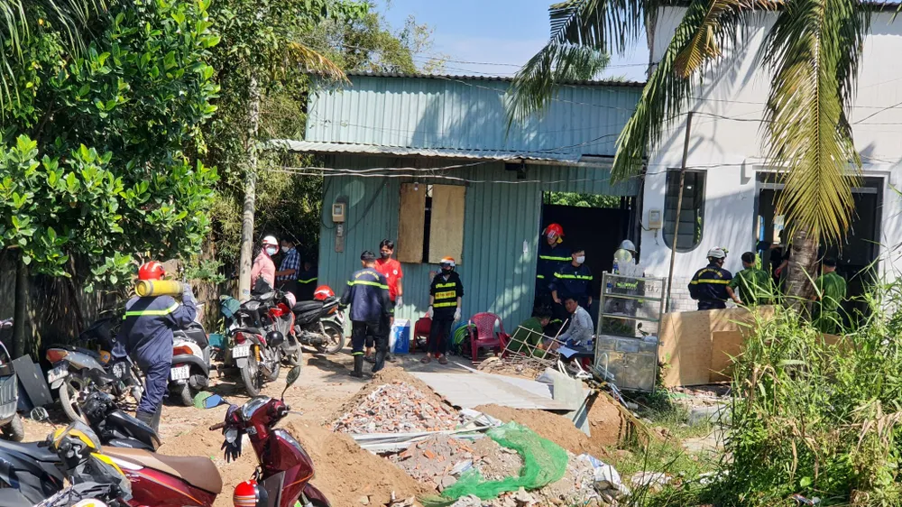 Trước đó, sáng cùng ngày, nhóm công nhân thi công ở căn nhà hẻm đường hẻm đường Nguyễn Xiển (phường Trường Thạnh, TP Thủ Đức, TPHCM) thì bất ngờ sàn nhà đổ sập.
