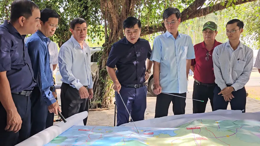 Lãnh đạo UBND tỉnh Đồng Nai khảo sát vị trí xây cầu Mã Đà. Ảnh: HOÀNG BẮC