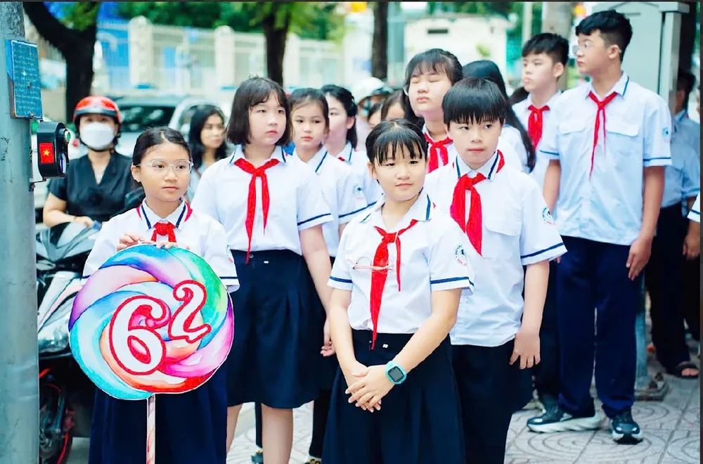 Học sinh Trường THCS Nguyễn Du (phường Bến Thành, TPHCM) trong ngày khai giảng năm học 2025-2026