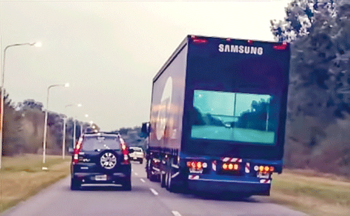 Nhà khổng lồ công nghệ Hàn Quốc đã lắp các camera ở phía trước và màn hình video ở phía sau các xe tải của hãng. Bằng cách này, những ai đi sau các xe tải đó đều có thể biết được ở phía trước xe tải có gì và liệu có an toàn khi vượt qua nó hay không. Hiện công nghệ này mới chỉ được thử nghiệm ở Argentina, nơi các vụ đụng xe do những người muốn vượt qua những chiếc xe tải lớn, chạy chậm diễn ra khá phổ biến và là một trong những nguyên nhân gây chết người vì tai nạn lớn nhất.