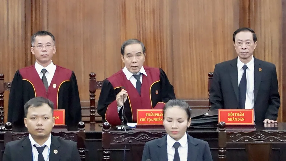 Chủ tọa phiên tòa công bố quyết định đưa vụ án ra xét xử. Ảnh: HOÀNG HÙNG