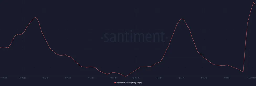 Hơn nữa, xu hướng tăng giá này cũng là kết quả của sự quan tâm ngày càng tăng đối với tiền điện tử, dẫn đến số lượng nhà đầu tư cũng tăng đột biến. Tốc độ tăng trưởng của mạng XRP đang có xu hướng giảm rõ rệt, điều này cho thấy tốc độ tạo địa chỉ mới trong năm ngày qua nhanh hơn 164% so với mức trung bình.