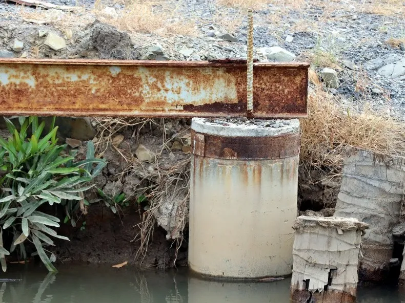 Trụ bê-tông được sử dụng để làm cầu ở thửa đất số 70, xã Vĩnh Thanh, huyện Nhơn Trạch.