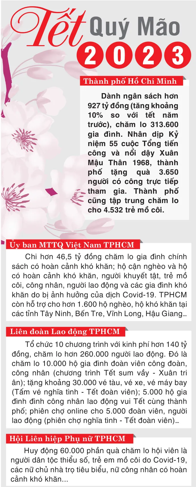 "Năm 2022, TPHCM phục hồi và phát triển kinh tế với nhiều điểm sáng rất đáng trân trọng. Đó là kết quả của sự chung sức đồng lòng của Đảng bộ, chính quyền và nhân dân thành phố. Để thành phố phát triển, một phần nhờ có sự chung tay, chung sức của nhân dân thành phố và các tỉnh bạn. Vì vậy, đã trở thành truyền thống, hàng năm thành phố đều chung tay chăm lo cho bà con nghèo, khó khăn ở các tỉnh. Qua đó, thể hiện tấm lòng tri ân của Đảng bộ, chính quyền và nhân dân thành phố với các tỉnh, đặc biệt là bà con khó khăn. Mong muốn của lãnh đạo TPHCM là mọi người đều có một cái tết an lành, ấm áp, không ai vì quá khó khăn mà không có tết"