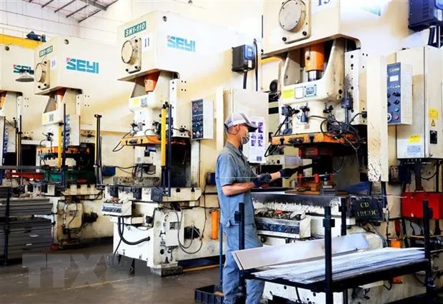 Hoạt động sản xuất trong nhà xưởng Công ty TNHH Cơ khí Động lực Toàn Cầu (Khu công nghiệp Giang Điền, huyện Trảng Bom). (Ảnh: Ảnh: Hồng Đạt/TTXVN)
