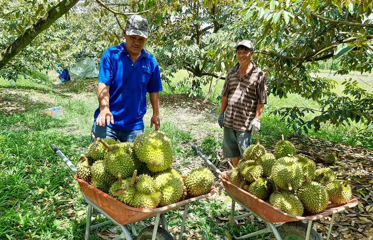 Nông dân tỉnh Tiền Giang thu hoạch sầu riêng