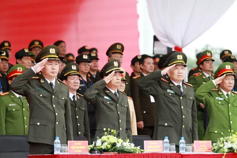 Sau buổi lễ, Bộ trưởng đã chính thức phát lệnh xuất quân để bảo vệ tuyệt đối an ninh an toàn Đại hội Đảng.