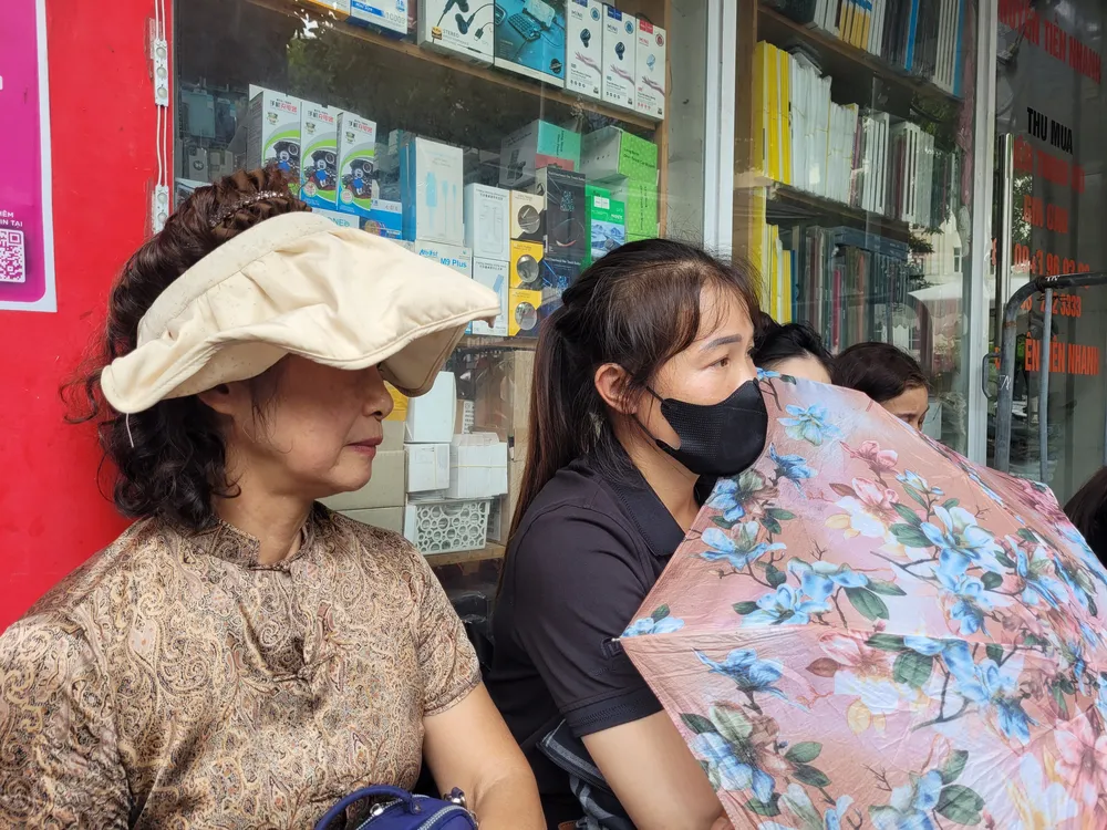 Bà Hoàng Thị Thanh và nhiều người dân chờ xuyên trưa để được viếng Tổng Bí thư