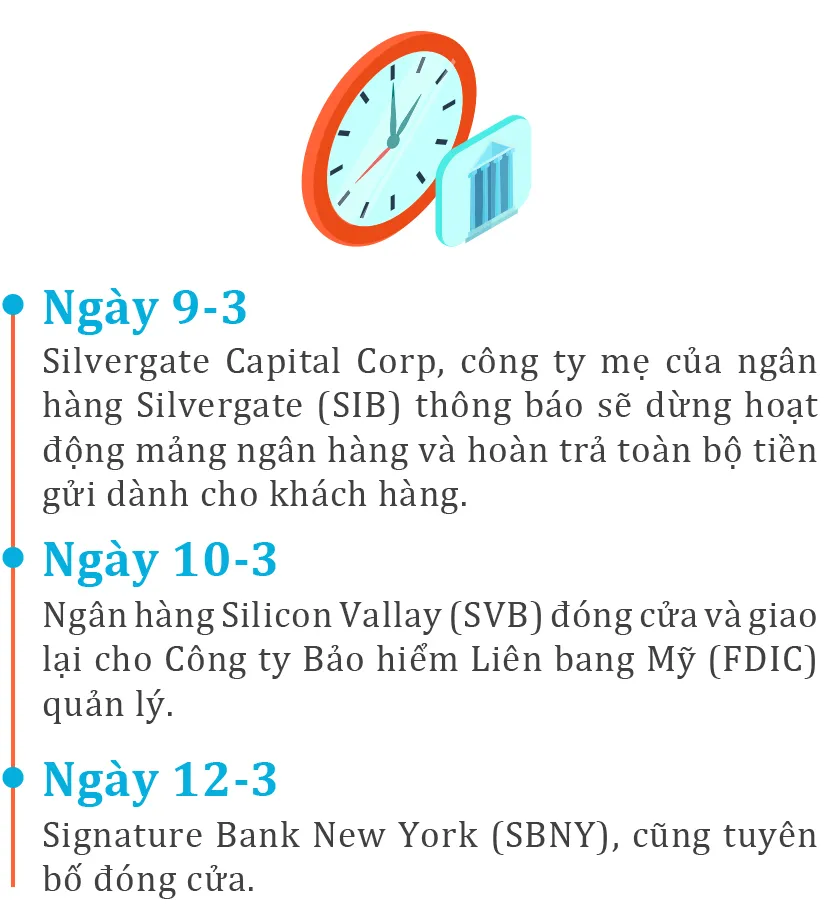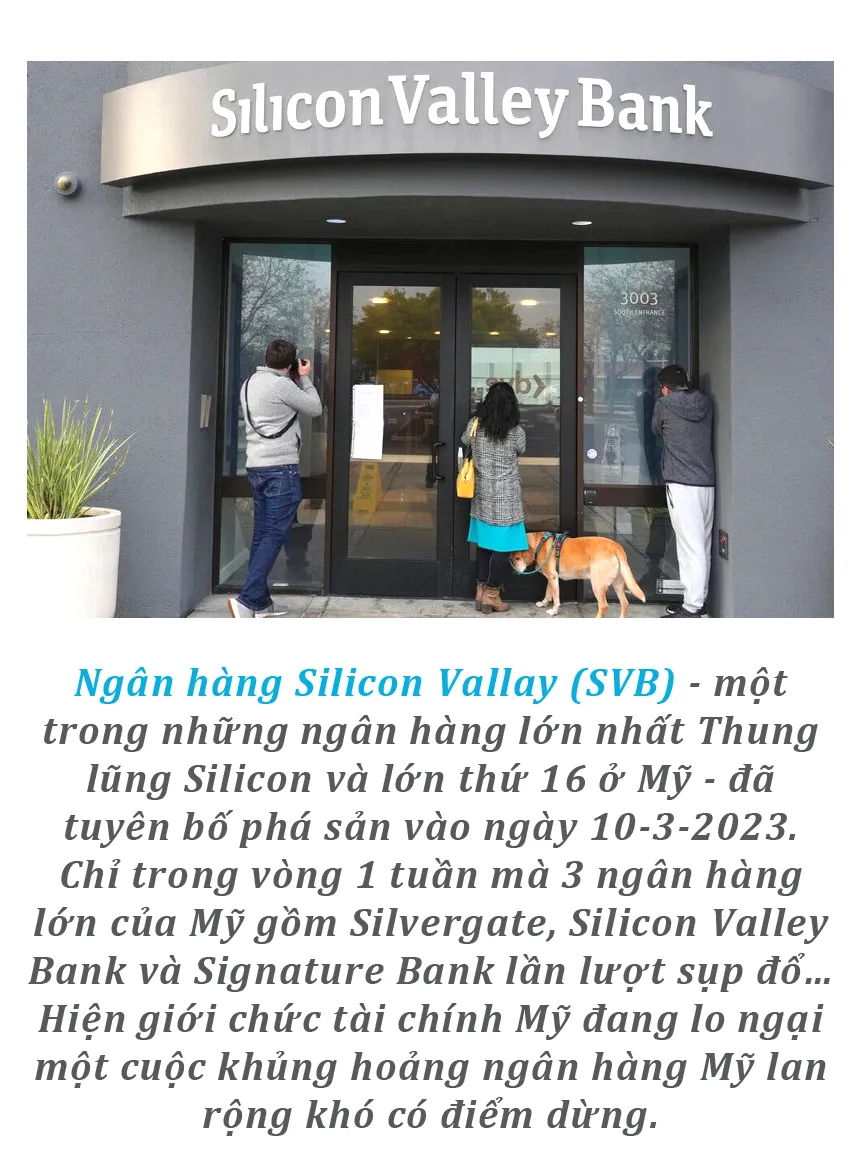 (ĐTTCO) - Chỉ trong vòng 1 tuần mà 3 ngân hàng lớn của Mỹ gồm Silvergate, Silicon Valley Bank và Signature Bank lần lượt sụp đổ… Hiện giới chức tài chính Mỹ đang lo ngại một cuộc khủng hoảng ngân hàng Mỹ lan rộng khó có điểm dừng.