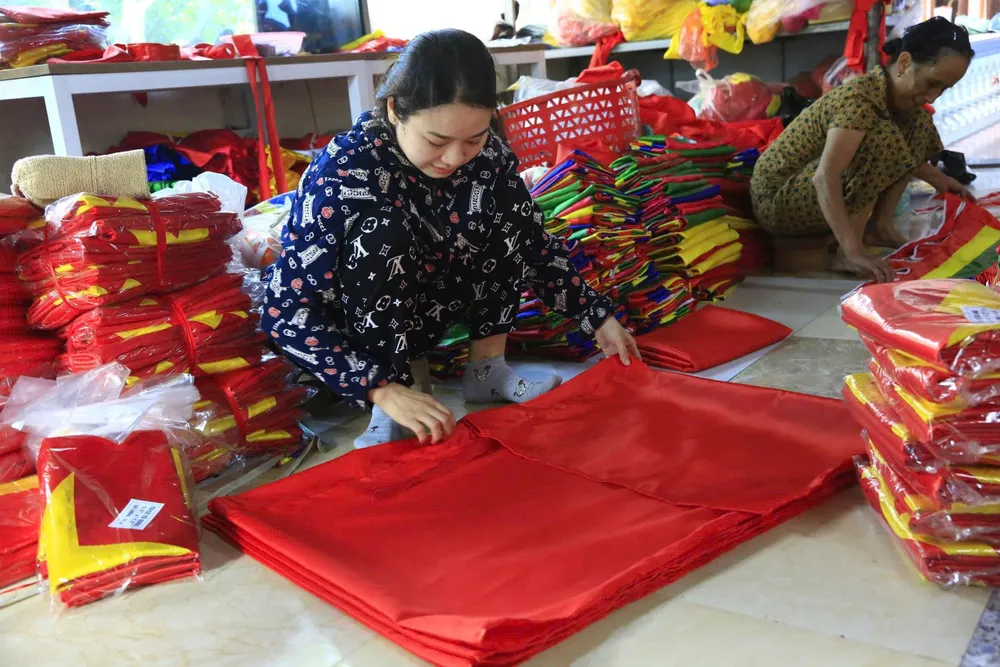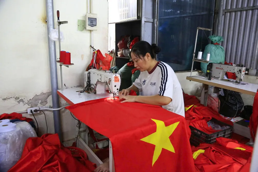 Các đơn hàng tăng mạnh nên nhiều cơ sở tăng ca để kịp tiến độ giao hàng phục vụ lễ kỷ niệm, các sự kiện lớn trên cả nước.