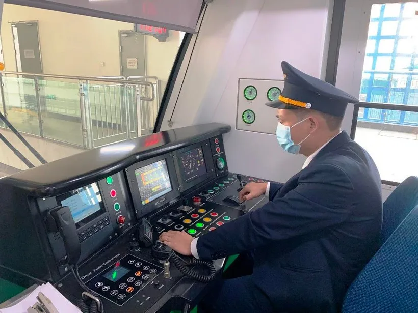 Lái tàu tuyến Metro Cát Linh-Hà Đông được cử đi đào tại Trung Quốc và về nước vận hành, điều khiển đoàn tàu. (Ảnh: Việt Hùng/Vietnam+)