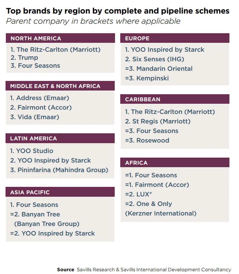 YOO Inspired by Starck là thương hiệu dẫn đầu tại châu Âu, châu Mỹ Latinh và châu Á - Thái Bình Dương. Nguồn: Savills World Research